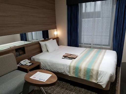 Read moreA nice hotel with a public bath at the top level (level 12)! Room is very clean, modern and tidy but it’s a little small but expected for Japan standard especially the toilet. There are toiletries provide in the toilet and also facial products in sachets such as facial wash, cleansing oil, milky lotion and face cream at the lobby next to the lift! A set of clothes were provide with a bag so that you can wear it when you want the use the public bath. The public bath is a shared bath that is separated by male and female. There are lockers and little cubicles for you to shower before entering the hot spring. There are drinks machine at the level 1 and it’s for free which was really great. There is no parking lots provided in this hotel so if you drive you need to find parking elsewhere. There is a monorail station just next to the hotel which is about 3 mins walk and it’s super convenient! The monorail is just next to a shopping mall with a supermarket at the basement. This hotel is slight further from the main shopping street which is quiet and less crowded! The price of the hotel was really reasonable! I would definitely come back and...