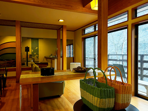 ひなたみ館をリピートした流れで、新規開拓をしようと思い、こちらを予約。||公式サイトで、苦手な食材の変更リクエストは受け付けないとか、出迎え、部屋への案内、布団の上げ下ろしはしないと明記してあり、少人数での運営をしていることが伺える。||それを理解した上で、訪問したが、駐車場に車を停めたことに気がついた女将は、玄関内で出迎えてくれた。||フロントでチェックイン後、部屋、館内の案内、朝食、夕食時刻については説明が欠かれた紙を渡され、口頭での説明があり、貸切露天風呂の予約を案内される。||||1Fのラウンジは飛騨家具の柏木工の椅子とテーブルが置かれた洒落た空間で、葉山のオーディオメーカーのスピーカーとマランツのCDプレーヤーとDENONのアンプでジャズがかかっている。||残念なのは、いいラウンジなので、お茶屋珈琲を飲みたくなるところだが、そういったサービス(セルフ含めて)がないことだ。||||自分で2Fに上がり入った部屋はコンパクトながら清潔で、四万川を見下ろすいい雰囲気の部屋。||部屋には温泉まんじゅうともう1つ和菓子があり、緑茶とコーヒーパック、ティファールの湯沸かしポットがあるので、自分でお茶を飲むスタイル。||||夕食までの時間に、温泉に入浴。||男性は露天風呂と内風呂があり、女性用は内風呂のみ。それに予約制の貸切露天風呂が1つあるもの。||||お湯は自家源泉で、かけ流し、消毒なしの正しい温泉。||男湯と女湯・貸切露天風呂で源泉が違うのか、成分表が別々になっていた。温度はかなり熱めで、宿側では特に調整せずに自分で加水して温度調節をするスタイルのようだ。||男性用露天風呂のほうが貸切露天風呂より広い。これは外部から風呂が見えてしまう構造だからやむを得ないのだろう。||||夕食は18時指定で、案内の内線電話もない徹底した合理主義。||1Fの食堂で食べるスタイルで、ここはJBLのスピーカーと真空管アンプでジャズがかかっている。||||グラスワインも450円とリーズナブルで種類も豊富、料理もイタリアンとフレンチをミックスしたような創作料理で、ボリューム、味ともこの価格の旅館とは思えないもので大満足。||||割とよく食べる私ですら最後のデザートまで到達できなかったので、普通の女性には食べ切れないと思う。(食べられなかったデザートは翌朝に回してくれる)||||朝食は、打って変わって和食で、味噌汁が巨大なお椀で提供され、おかずも手作りだとわかるものが大半で、どれも作りたての温かさが嬉しい。||||【全体的な感想と気になった点】||お湯の良さは四万温泉の中でも高レベルな旅館で、料理にコストのほとんどを投入し、接客などは基本的にしないように割り切っているメリハリのある旅館。||||旅館のスタッフで見かけたのは料理を提供してくださる男性と女将の2名くらいなので、その2名で運営しているように感じられた。||そのための合理的なルールが徹底されているが、とはいえ、たった数組の客への接客としてはあまりにもクールすぎで、玄関での出迎え、見送り、部屋への案内をするのにどれだけのコストがかかるとも思えない。||「リラックスした時間を過ごしていただけるよう」といってはいるが、そこと徹底した合理主義をうまくすり替えているような気がしてならない。||お湯の温度管理も旅館として最低限するべきだと思う。||||ラウンジには、ネスプレッソのマシンあたりを置いてセルフでコーヒーを飲めるようにしてもらえるとうれしい。||部屋にも冷水ポットくらい置いて欲しい。||||料理についても、メニューの紙がテーブルにあるとはいえ、食材の魚の種類や、特徴的な野菜の名前など、料理にこだわりがあるなら余計にその説明をサーブする際にしてほしい。||旅館のスタッフにとっては毎日のメニューかもしれないが、宿泊する客にとっては初めて目にする料理の数々なので、そういった食事に対する説明はあってもいいのではないかと思う。||||食堂も3組程度でゆったりと空間を使っているためとはいえ、他のグループとのパーティションもないため、プライバシーは無いに等しいので、お忍びカップルのような利用には全く適さないだろう。||||ブログをみると23回目とか20回目という超常連に支えられている旅館のようだが、全体的なバランスを考えると誰にでも薦めら...