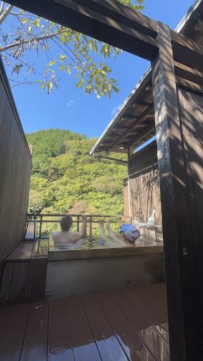 Had an incredible experience here, it's been on my bucket list to stay at a traditional Ryokan and this establishment ticked every box. First and foremost, the service was beyond excellent! Our host was polite, courteous, and professional. The traditional rooms were a treat to stay in, I especially loved how comfy the tatami mats were (even to sleep on). My favorite experience though was food, I have never had such a delicious assortment of dishes, and the presentation was phenomenal! I usually don't eat much fish, but I tried everything and to be honest it was incredible, the only dish I had some trouble with was what I think was raw squid (still finished it though!). And finally, the personal bath we had with our room not only was set at the absolute perfect temperature, but combined with the view of the mountains surrounding the Ryokan was breathtaking! Also, the ambience from the river below was the cherry on top, I've never had a more relaxing bathing experience... (Plus the body wash soap they provided smelled so good I bought four bottles to take back home, it's fresh apple scented from local orchards!!!)