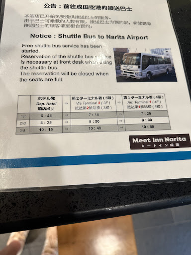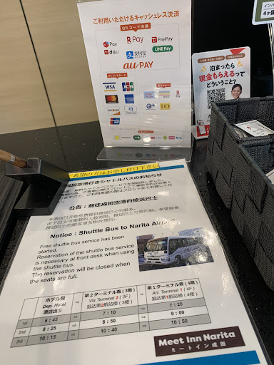 Read moreI stayed at Meet in Narita on an overnight trip. I usually have great experiences at Japan hotels and never expected my stay to go as bad as it did. Check in was no problem and staff were very nice. The Wi-fi was okay and the room was clean. The hotel is conveniently located near the Keisei Narita train station. The problem with my room was that it was very warm. I tried multiple adjustments of the AC and it would not cool the room. I finally called the front desk and told them my AC wasn't working. The person at the desk apologized and explained that the AC temperature is set and not adjustable. He suggested I open my door. I'm sure he obviously meant my window. I did that and the room did cool down. But I was on a low floor and now it was so noisy from the street below. I was awoke several times with people from the bar downstairs talking loud. I ended up having a very poor night sleep. I'm not one to make the room cold. But it has to be cool at least. How can a hotel not have the temperature control adjustable? I regret staying at meet in and will never again. I usually stay at Richmond hotel across the street but wanted to try...