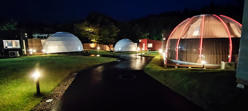 Read more良いところ ・お肉がめっちゃおいしい ・魚介もうまい ・サウナはスイッチオンして1時間すればかなり激アツ ・テントにあるベッドは快適で楽チン ・道路沿いにある他のグランピング施設と比べて自然に溶け込んでて良い ・グリルやその他貸出アイテムも揃ってて大人数や家族にはとっても使いやすい。 ・テントにサンダル常備されているので、履物で手間取ることはない ・テント前まで車では行けないけど、アップダウンこそあれど舗装はされているのでキャリーやスーツケース引くことが可能。(テント前は段差や階段有) ・まさにいいとこ取りで着の身着のままでグランピングが楽しめること ・テント(ベッド、コンセント、エアコン有)とキッチン、お風呂、トイレが入ってる建物、サウナ、焚き火などをする場所が1予約者1エリアになってるので他者と共用することなく使えるのは良い