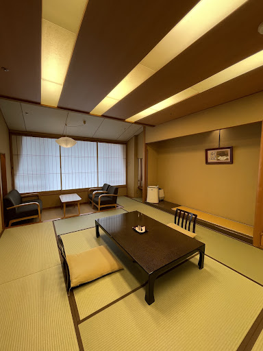 Large ryokan In Iwamuro onsen. I am learning that if the ryokan is large, the bath is bigger and other amenities areas are larger as well. We stayed on the fifth floor and the view from the room was nice, just a large rice field. (Being winter, no rice is planted. They have 2 large bath both with additional outside bath, and they are quite large. The service was very good all of the staff are pleasant and helpful. They have a nice sized lounge area with free drinks. I used a plan that takes us out to their restaurant out in town, the driver was good and they had no issue for extended stay. I will definitely try this...