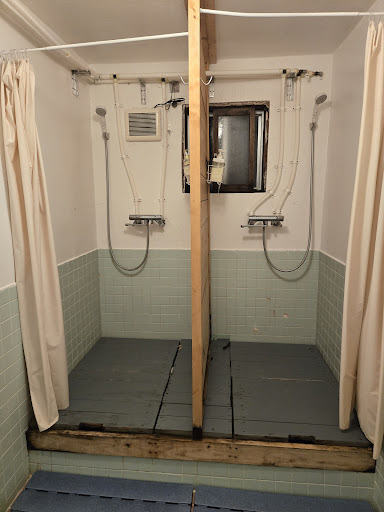 The setup caters heavily to men, who get better facilities than women. The female shower situation is incredibly uncomfortable, with frosted doors that men pass by on their way to their own showers, giving them a clear view of the shapes of women changing inside. The women’s bathroom has just two toilets and is constantly freezing thanks to an always-open window left that way to air out the smell. I am attaching pictures of the female showers and bathroom (sadly didn't think to grab one of the glass entrance)