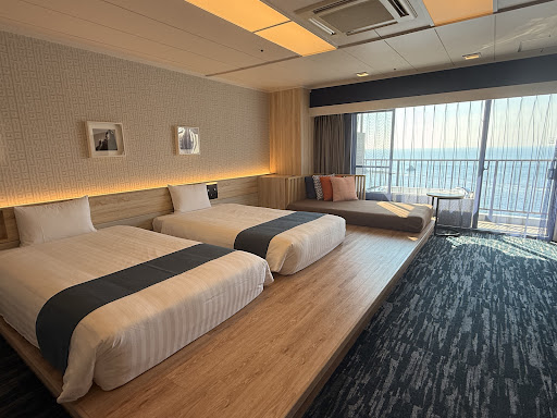 Food: The buffet dinner was one of the best I’ve ever had, which also came with a main course that offered slices of Wagyu beef. Wouldn’t hurt to take in a few extra bites right? LOL! Italian artisan desserts and gelato tasted like paradise. Breakfast was equally delicious. Fresh sashimi, sea snails 🐌 plus a bunch of baked goods to go with the cheesy scrambled eggs I couldn’t have enough of…..decadent flavors completely brightened my day. To top it off, the hotel’s free snack bar located on the first floor offered a wide range of drinks and sweets, became all the rage among the children… and adults 🍻 🤣