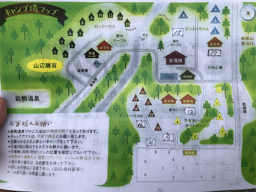 Read moreお盆あけの平日に利用しました。能勢温泉の先にあるキャンプ場です。細い道を通り青鬼、赤鬼が迎えてくれます。その日は数組の利用だったようで、台風が去った後ということもあり、かなり空いていました。 この時期学生さんたちがいるとかなり盛り上がったりしますが💦(騒ぐ声で朝まで眠れなかった経験があるので。。) この日はとてもラッキーで、ルールを守られる方で一安心。洗い場とお手洗い🚻は夜中もずっと電気がついています。私は電気がある方が安心なのでよかったのですが、虫は集まってきます~ トイレは気になるポイントだと思いますが、広めできれいでした。