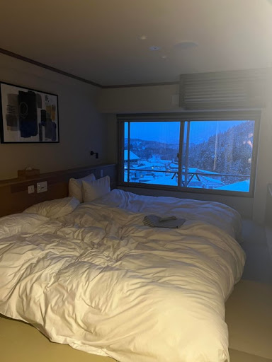 Read moreOn the upside, Our bedroom was large and spacious and the facilities were good ( coffee machine, kettle, microwave, etc). There was a washer and dryer on the lower floor which we could use. The staff were really helpful in getting restaurants booked for us. |There was a shuttle service that took us part way up the hill (steep hill!) so we could walk last little bit before getting on the very long travelator. This then got you on the mountain by the lifts. Total time is about 30mins from hotel to getting your boots on and getting to the lifts. Walking home down hill was a lot easier! ||Downside: |Breakfast service was really slow. One morning we waited 50 minutes. The food was delicious but it took ages to arrive. |The restaurant area ( seats about 20 people) was cold. Everytime the reception doors opened, a freezing cold draught blew three the dining area. |Room 102 - There are no curtains on the bedroom windows, only paper blinds, and as we had a double aspect room, the light really shone through and woke us up early. |The wardrobe was up on a platform ( about 2 feet off the floor) and when you climbed up on the platform, you had to crouch down so you didn’t bump your head. |The TV was a right angle to the bed so not comfortable viewing position. I think if we had been there for more than a few nights, we would have asked to change rooms but overall, it was good for a few nights. |Great little onsen (which was a lovely welcome treat at the end of...