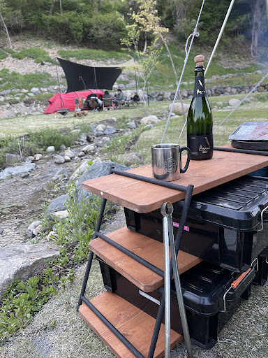 GWということもあり、前もって場所は決められてしまいましたが ツールームテントにタープを張っても余裕でした。 サイトの形は独特ですので割り当てられた場所、日の向き 小川との位置関係など考えて張る必要があります。 楽しいですが迷います。