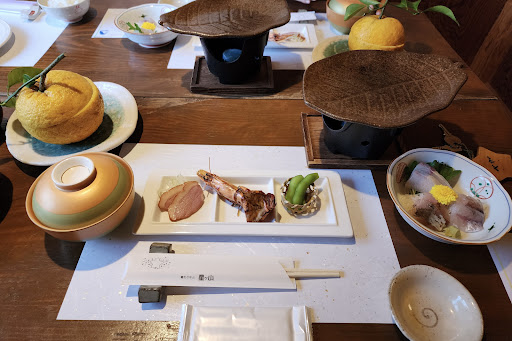 Read moreIt's a little far from anything, but that's part of the charm. Up the side of a hill in the middle of the woods you have a bunch of small cabins. From the cabins you can see a lovely waterfall, walk paths along streams and in the woods, and enjoy hot springs. There are private baths as well if you want to enjoy time alone. The dinner and breakfast were both delicious Japanese seasonal cuisine. We had a great time. The staff is also very friendly and if you call from the train station they'll come pick you up. A...