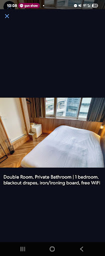 My room was on the 5th floor, and I can't say I really enjoyed it cuz you'd at least expect free slippers and a towel, which is currently being offered as a rental service. The room was dusty, and my pillow had a yellow stain, which was faint but unpleasant. I know it's "u get what u paid for," but you can tell that they make this their excuse to get away from doing the basics. What I wanna say is my room wasn't as clean as I had expected it to be. The glasses girl at the reception could use a smile. Her reaction wasn't very friendly when I reacted in surprise that they charged you for towels and slippers and other amenities.