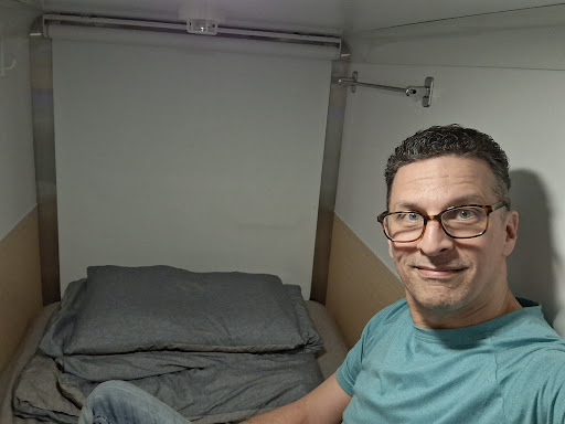 First time for me to stay at a capsule type of hotel. The sleeping pods room is double doored from the shower and bathroom area on the same floor so it's very quiet in the sleeping area.
