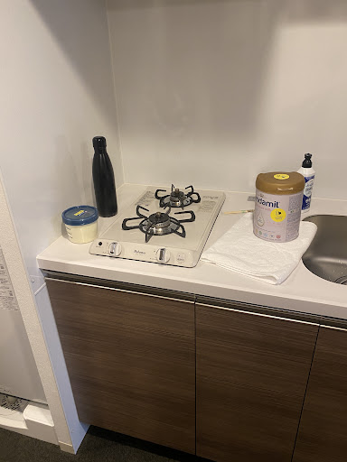 This is the hotel I was most satisfied with during my trip to Japan. Most of the hotels I booked, especially in other areas or even in Osaka, had very small rooms. Then I happened to come across this place, it’s a studio-style mini apartment converted into a hotel for tourists. There’s no staff or front desk; everything is done through email. You receive an entry code for the building and a code to unlock your room, that’s it, just head straight in.