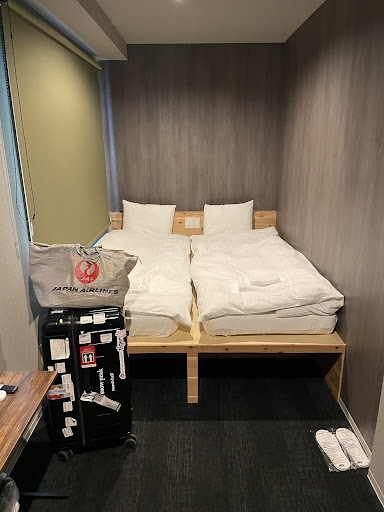 Hotel is no one there after 6pm on Sunday . So I don’t got any email about self check in when I arrival at 22:00.Actually I have information about this hotel should be check in time 15:00-22:00. So I don’t know what happen why no body here after 18:00.So I can only keep knocking the door until someone hear from the inside ! That night with heavy rain and no cover at the door , so I am keep knocking around 10 mins , Another guess hear that , so I am lucky to get in.Then I can see a table at front desk , and just have a card told u how to self check in by scan QR code !But the problem is you had to get inside first ! The door has a 4 number code for get in , but if you never get inside , then you will not get it ! So funny!The room is ok, very small but around two thousand yen for one night is ok . But the fridge is very smelly, that mean no one clean it . They offer a paper slipper that is ok but very thin. And they provide 2 towelA single room, bed is upper side and lower part is small sofa , that is even can seat too long time because it is too low, your leg can’t get comfortable. So I use the towel cover the sofa and seat on it because it seem not clean enough.Toliet is good enough . And I don’T try the bath room because there has a very nice public bath shop just 1 mins walk , so I just try that instead of the hotel one.Overall if you just stay one night and want to get close to the airport , it is ok to try it. But for more than one Night , you have to...
