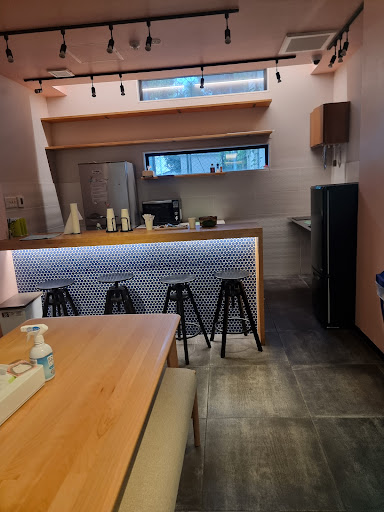 Laundry has been a godsend, since we've been backpacking and often rewear clothes on the road. Two washers and two dryers are available, coin operated. They take 100 yen coins. They also offer tide pods for 100 yen a piece. There's a roof access though I haven't checked it out yet. Will update review after checking it out. At the living area on the first floor there's a bar, kitchen, and seating with plenty of room and ambiance that's cozy and inviting. I met some locals who work at the hostel and are very friendly. I love the setup, it seems like travelers come and go, some working while staying there for free lodging. Drinks were around the 400 yen range, a good price for beer.