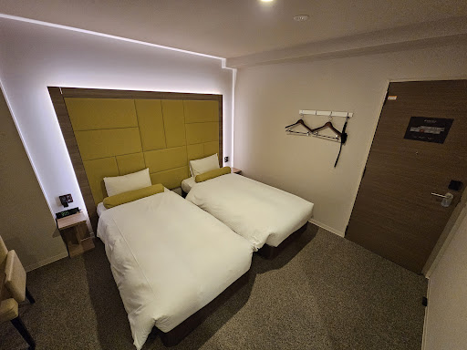 Read moreFor now, it’s brand new and everything is clean, comfortable, and quiet. I consider this a boutique sized hotel, not a four star as some hotel booking sites note but more upscale than a three. I imagine they are not yet at 100% finished operational capacity because there are few things I’m missing. One is a desk in the room and perhaps a room safe. It’s certainly spacious enough, large by Japanese standards, for a bit more furniture. There’s no closet but there are hooks and hangers. The room, however, is well designed and there’s a place for everything. There are thoughtful elements - like usb and electrical plugs on both sides of the bed and a luggage rack. The hairdryer is a very cool design but I wish there were some utensils in the room. One can borrow from downatairs though should they be needed. There is an electric kettle though and cups, plus tea. They could also do with larger and more towels - and more places to hang them. I find the configuration of the shower and bath a little unusual since the shower is not in the tub area but separate as a cubicle with shower door a step before the tub. It made me wary about water seeping onto the main lavatpry area so I shower by targetting the spray into the tub. But, that’s me. I also don’t understand the reason for such tiny rubbish bins. The bed is what can be considered a queen in our room, a superior double. Very comfy and cozy. Wish they had more or larger pillows though. The staff are accommodating, articulate, friendly, professional, and very helpful. Location is excellent. There’s an airport bus service a few buildings down and the hotel is steps away from the action of the Dptonbori-Shinshaibashi-Namba quadrant while being a little away from the madness. Aside from the little tweaks here and there, I recommend this hotel and wouldn’t mind staying here again. The cons are just minor compared to the overall pros...