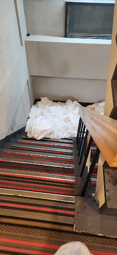 Also, they put the clean linens and towels on directly on the dirty stairwell. I told management and they basically said they were "dirty sheets from the previous stay" and not my concern...problem is they likely did that with my sheets. I saw this on each floor as I went down from the top floor every day during my stay.