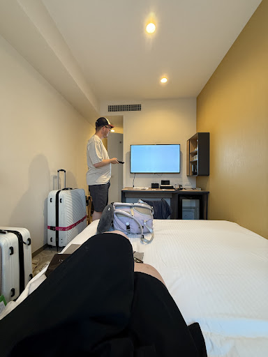 Read moreLocation: There is a bit of a walk from here to the subway or other train lines, so keep that in mind. If you walk about two blocks west, there are often taxis lined up, especially in the evening and early morning. Also 7-eleven is a bit of a walk away, but Family Mart is very close. |Room: We booked standard double rooms. Keep in mind the "moderate" category rooms have the sink close to the bed which I find somewhat awkward. The standard category room I booked had a proper enclosed bathroom which I prefer. I did not really enjoy the very tiny sink, with an awkward setup with a shelf not far above the sink, making it hard to find space to wash your face. However the shower worked very well. In the room, the air conditioning was strong and the bed was comfy. There are power outlets only on one side of the bed, and the side closest to the wall has only a USB-A outlet. |One of my favorite things about this hotel is the amenity bar in the lobby near the elevators. You can pick up sample size packets of personal products which are unavailable in the rooms, such as facial cleanser, moisturizer, even combs. Inside the rooms they have toothbrush/toothpaste, and shower products like shampoo/conditioner. |This hotel does have breakfast for an extra fee, an onsen (with a congestion meter viewable through the TV in the hotel room), and coin laundry facilities. I didn't try any of those. Also, each floor has a microwave tucked away near the elevators, making heating up cold food very convenient. I definitely used it a couple times for my breakfast from the combini.|Overall there are a few inconveniences about this hotel such as the location and the sink size, however given the very good deal I found through Agoda, this place was still very well...