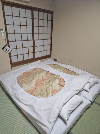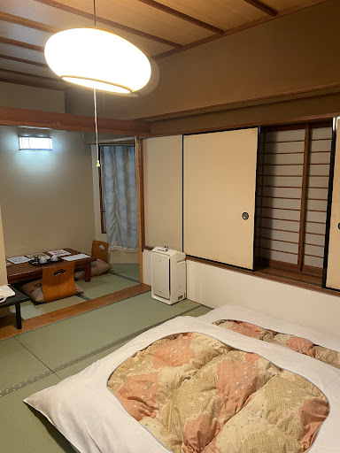 Read moreRyokan review Osaka||||We stayed here for four nights while exploring Osaka and surrounds. The room while small did have adequate space for four (including two teenage boys), had a private toilet, bath and shower, TV, a fridge and heating. Our room on the fourth floor was easily accessible by elevator, but watch out it, the doors don't back off from closing and it can hurt if you get caught in the door. We had a very friendly reception on arrival and a tour of facilities including how to put on a yukata, you don't need to take your shoes off until you get to your own room here. The room was serviced every day and we got clean bedding and yukata as well. Don't be put off by the 80's dark feel of the place, it's well located and easily found (count blocks and cross roads rather than try and look for street names unless you can read Japanese). The staff were very helpful, running after us with umbrellas in the rain and always with a cheerful greeting as we came and went. I would recommend this as good stay in Osaka, easy to access by subway and plenty of options to eat in the lively Dotonbori district. If you want to buy a beer, walk a block and get it from a convenience store as the vending machines charge about double. The in room wifi...
