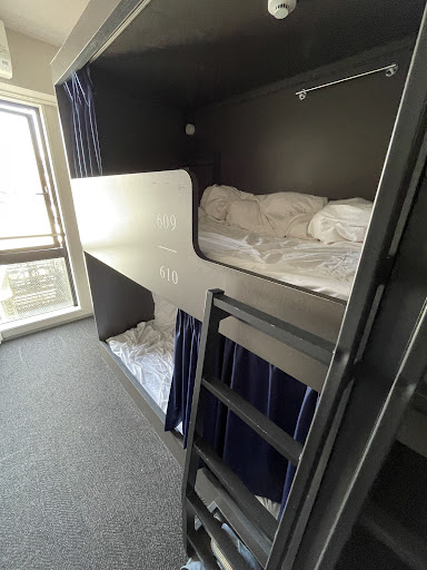 The facilities are very high quality for the price! Capsule hotels tend to make everything very small, but the bed had enough space for a 5'6" person like me to roll and sit up comfortably. There are charging ports inside your bed area, a lock box, a light, and a hanging rack for jackets. The only downside is that any big luggage needs to go on the floor, which could lead to theft if you don't properly lock it and hide any valuables.