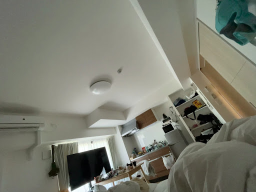 There’s a balcony where there is a slipper and a long rod for your to dry clothes. We didn’t use it because very troublesome to open the door. The weather is pretty cold here so we try not to step out to do the laundry.