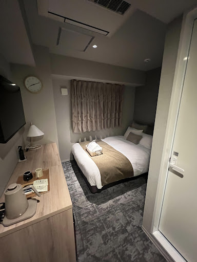 Read moreI booked the 11 sqm double bed room for ¥34,658 for 6 nights, a last minute offer. The hotel decor is new and modern. I can open 1 small suitcase and 1 medium suitcase in the room. It's perfect for one person but definitely not for 2. Do book the bigger rooms for 2 and above. Double bed in japan is bigger than super single but smaller than queen. Hotel is located along Yotsubashi Blue line. It is a few stops away from Namba, Shinsaibashi, Umeda etc. You probably need to spend 200 to 400 yen more per day for transport than if you stayed in the centre of tourist attraction. There's a big supermarket, lawson and McDonald's nearby. I highly recommend the Western restaurant Perotto, delicious and affordable japanese-western food. There are 2 coin-operated washing machine cum dryer. Free basic toiletries provided. Bathroom comes with a tub. No daily cleaning but you can request when you need. I didn't have issue with road traffic. There's ambulance sound but not too loud and lasted very shortly. My room view is facing towards a building staircase because I asked for quiet room. All in all, this hotel is good value and comfort and I might...
