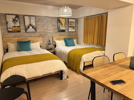 강가 앞에 있어 집앞에 리버뷰가 예쁘고 난바역,도톤보리까지 가까워 위치도 좋아요. 숙소에 간단한 식기와 조리도구, 프라이팬, 냄비, 수저 등 잘 되어있어서 근처 마트음식 먹기가 편합니다. 냉장고, 냉동고, 인덕션2구, 토스트오븐, 전자레인지, 커피포트, 전기포트가 있어요. 침대는 2인용으로 살짝 아쉬운 더블사이즈2개같아요. 침구도 깨끗하고 소파배드도 튼튼해요. 가구와 식기류 전부 이케아제품이라 외국에서도 왠지 익숙하고 편한느낌ㅋㅋㅋ 빨래건조대, 아기의자, 공기청정기, 벽걸이에어컨2대, 일본식 작은욕조, 구두주걱, 분리수거통, 청소기 있고, 수건과 샤워용품, 세탁세제와 탈취제, 고대기와 드라이기 등이 있는 트롤리도 있어요. 수건 예약한 일수만큼만 준다해서 챙겨갔는데 수건 많았음! 식탁, tv앞 테이블도 있어 식사하기 편합니다. 추가침구는 붙박이장에 들어있어요.