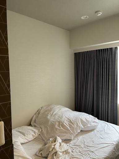 Read moreAnother hotel with the impersonal machine check-in. We actually found it hard work doing all the checkin requirements by yourself, having to fill in all the details, scan passports, etc. This one spewed out loads of paper - turns out they were all the vouchers for breakfast amongst the receipts and key cards. Turned out that there was only one voucher for our last breakfast before checkout, so I had to go to the desk to get the extra one after all! The breakfast was very Asian, so did not really suit our palates. It included things like fried chicken, meat balls in gravy, rice, spaghetti, boiled veg, etc. The breakfast time is early, finishes at 09:30; we do not know why, when we are on holiday, that we are forced to set an alarm to get up so early for breakfast. The mini croissants were very soft - it took me the final breakfast to realize to put them in the toaster for 2.5 minutes which crisped them up into delicious croissants as they should be. Incredibly, every day the fruit was frozen solid and thus inedible. In order to thaw it out so that we could eat it, we filled our bowls with hot water. If we had not unfortunately pre-paid for the breakfast, we certainly would have made our own arrangements.|The only available tea bags were either green tea or Lipton Yellow Label. We don’t like the latter, it is far too strong. We like green tea - but not for breakfast. I tried the coffee, but it is bitter and unpleasant. |The room was extremely small, and very uncomfortable. We could only open one of our suitcases at a time. We had to keep moving the suitcase, close to the room door so that we could open the bathroom door, then back in front of the bathroom door so that we could open the room door in order to leave. |Very little space in the bathroom for our personal items. We had room for our toothbrushes, my shaving kit, but not much else.|The air conditioner, high above the bed, was not very efficient. There was, fortunately, a floor cooler (which had a water tank that we had to fill) which helped to cool the room.|The bed, while being reasonably comfortable, was far too hot. The duvet seemed to be thick. We did not sleep well during our stay here.|Even though there are lots of tourists, there were no English language programmes on the television. All channels are in Japanese, so we had no idea what was being said.|One item on TV which was of use, was an ability to monitor availability of the washing machines.|Strangely, this room had no ‘Do not disturb’ sign - only one asking staff not to enter the room, but to supply towels. Even though we did not need or want fresh towels every day, we got them every day because of the only sign available to stop them making up the room. Interestingly, you are only allowed to use this sign twice; on the third day they will enter your room in order to make it up, whether you want them to or not.|We will certainly not be using this hotel again. We wish we had checked the room size online...