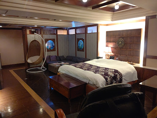 悪かった点 ・会計などで使うカードが、お部屋に置いてあると言われたが無いく、フロントに電話したものの探してみてくださいとのことで二人で部屋中大捜索……数十分かけて探したがやっぱり無く、何度かフロントに連絡したところ、新しいのを用意しますとのこと……それで問題がないのなら、最初から新しいのを用意して気持ち良く利用できる方が、客を床這いずり回らせるよりは良いのでは ・掃除は行き届いていない 露天風呂はこの部屋の醍醐味にも関わらず黄ばみ(劣化?)がひどかった バルコニーにはくつろぎ用のベッドが用意されていますが、クモの巣だらけで最悪、マットの裏も緑色のカビだらけ(どうみても一日やそこらでなる汚れ方じゃない) バルコニーの床は砂か何かでジャリジャリしている(靴で歩く前提だったのかしら……) 他、部屋中ホコリが目立ちます ・修復が行き届いていない 漫画がおいてあるちっちゃいスペースの座椅子が破けて綿が露出していた ベッドについている照明のボタンが効きにくくなっていた(一度フロントに電話したが大丈夫なはず……と。グリグリと強く押してやっとOFFに……) 故障かお化けかわかりませんが、暖炉が勝手につくことがありました(リモコンの場所を確認しましたが、二人がいる場所とは全く違うところにありました) ・お気持ち程度にバルコニーの入り口付近に水鉄砲が置いてありましたが、壊れていて水がでませんでした。最初から置かなければ良いのでは。