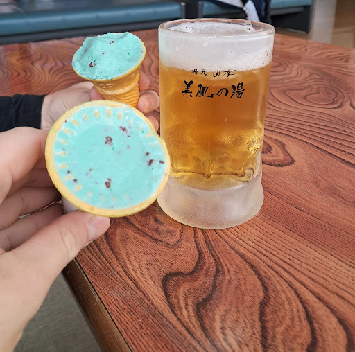 Read moreThis onsen is the 2nd best I visited!! They have 3 indoor pools, one of them with water massage, a sauna and a cold pool and 2 outdoor pools. I was in as a day trip onsen guest on a day when we bathed with grapefruits, the smell and its effect on the mind and skin were amazing 😍. I could enjoy the snowfall outside, it was a beautiful view as the snowflakes landed on top of the grapefruits. The staff is very smiley and easy going, they have draft beer and softice, both tasty! Ticket is 500 yen. No WiFi or rinse in products...