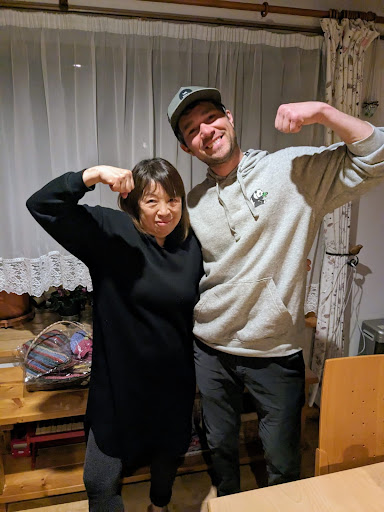 It was a little odd when we first arrived - early evening - that other guests were in their rooms when there was a lovely open fire blazing downstairs. However, it soon became apparent that the owners, Yoko and and her husband Kazia, watched TV all evening and the downstairs was their space to drink and enjoy their evening.