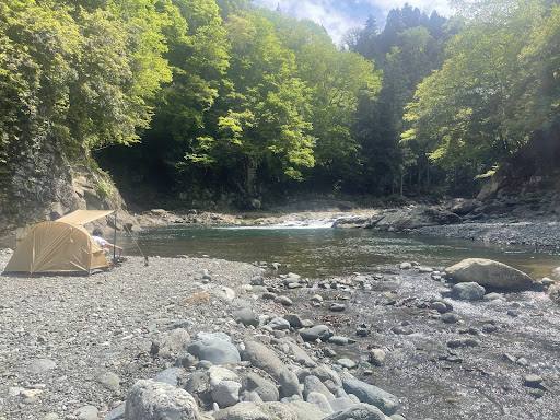 I brought my car, set up a single tent, and pitched a canopy (tarp). The entire area is right by the river, and the sound of birdsong fills the air all day. At night, it’s peacefully silent, which made for a super relaxing stay. There’s a great hiking trail nearby too, which adds a little adventure to the chill atmosphere.