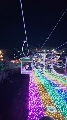 肝心のイルミネーションは、パディントンタウン(かわいい)→光の雪だるま→光の海など色鮮でとても綺麗でした。 一番楽しみだった虹のリフトも文句なく素晴らしいイルミネーションで遠くには町の夜景も見ることができました。リフトも混んでますが、2台あるので回転が良かったです。 頂上にはセーラームーンの特設サイトと、観覧車などのアトラクションがありました。