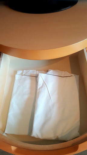 Getting our keys at reception was rather quick and easy. The hotel itself looks rather upscale and we appreciated the last minute luck in booking it. We got a room on the 10th floor, it was a nice view going up in the elevator with floor to ceiling view. Initially the room was rather elegant with all the basic amenities: free WiFi, mini fridge, toiletries, blow dryer, kettle with green tea available. There was even coffee available for a fee of 200yen.