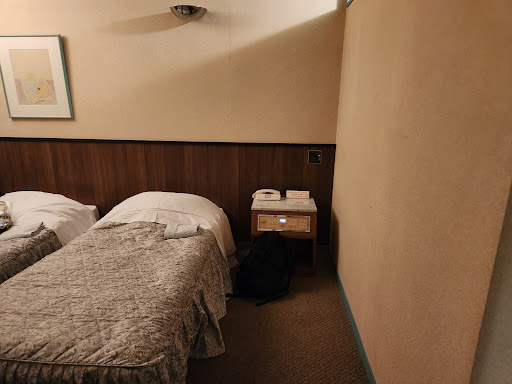 用事で203号室3泊利用しました。西武鉄道狭山市駅から歩行10分で行けるが、 スーツケース引きながら状態で流石に辛かった。 バスでも行けるが本数少ない時間的に歩いたほうが早い。 駐車場側の入口から入るとエレベーターで2階ロビー、 外側階段で昭和イメージである回転ドアからでも正面玄関をアクセスできる。 受付のばあちゃんは優しくて親切です。 全体的にとりあえず昭和バブル的なレトロ感、 もう使えないプロジェクト式テレビは宝物のような大事に保存している、 側に置いてる電気ポットは貸してもらいました。 客室廊下入口に借りる漫画誌も大量置いてある。 部屋のドアのロック金具は潤滑悪くてパンと閉めないとうまく噛み合わせない。 客室のユニットバスはシャワートイレではないが、 風呂用のシャワーヘッドでなんとなく代用できる。 デスクライトのカバーはもう無くした裸電球状態で眩しすぎて使えない。 こんなレベルの部屋は1泊5千円台では流石に高すぎ! 古き良きを安くて売れる視点では千円下がってほしいのです。 この点について⭐︎-1させていただきます。