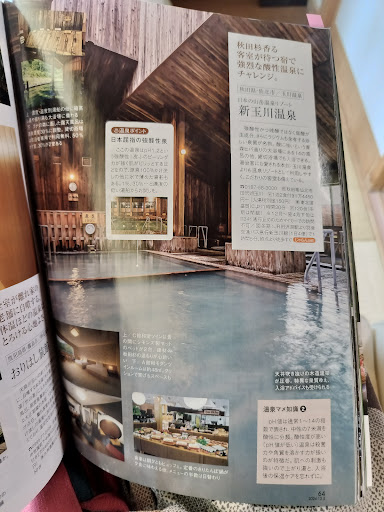 The spa area offers similar types of bath options to those in Shin Tamagawa. Shin Tamagawa's spa area is at least 10% bigger at 50 x 30 feet (~ 20 x 10 metres) with twelve baths. Types of baths offered include steam baths, cascading baths, bedrock baths, and rotenburo, with different concentration of acidic waters. The 100% acidic hotspring water being the most popular with the Japanese guests. All baths are gender segregated, and friendly to the physically challenged.