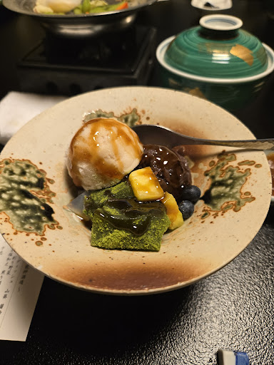 The kaieseki was very good, usually at these places it’s hard to eat for foreign taste buds but everything was great here. Breakfast tempura was good, udon was disappointing (not bouncy as I assumed). They catered carefully to the allergy we had & dining service was also impeccable. I especially loved the chart showing where each ingredients are from, which farm etc. Mostly all Gunma region which made the entire meal feel very special.