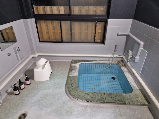 Read moreThis is a some what overly designed place. In my Japanese style room there was a lamp hanging at around 165 cm from the ground. Therefore, everytime I walked across the room, I had to watch out not to hit my head. Also, my blanket was about 170 to 180cm long. Never had that happen to me. Location is OK, a bit outside the town and close to a some what busy street. Inside they have two private onsen baths, which are fine and seemingly well maintained. One staff had a bit of trouble with English and they couldn't...