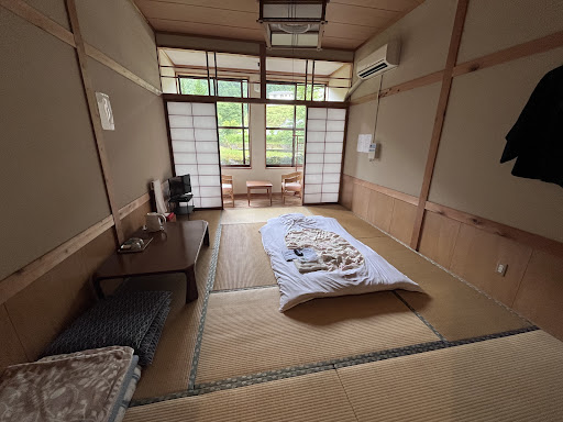 Read moreThis place used to be a school in the past, they managed to change their clasrooms into amazing tatami rooms! They offer you a yukata so you can use for dinner, if it gets too cold, you can pay 100 yen to turn on the heater, they have laundry machines and a very nice bath. I used it right after I arrived (13:00) and only shared it with one lady. There is no WiFi in any room but the living room and sometimes it doesn’t work. They clearly labeled my food with "vegan" but they served miso soup with fish :( But the rest of the dinner was good. Also If you're vegan, I reccomend you to bring vegan protein or buy some onigiris because breakfast is just salad and fruits for anyone with a plant based diet. This is the most difficult and demanding day of the hike, so luckily I had my emergency protein with me. Lunch box was okay. If you get there early, you can enjoy your afternoon on the field, where you can buy some coffee or beer. It was a great feeling walking out in the morning, ready to walk for the hardest day of the hike and having your staff playing the horn seashell for us. I felt powerful. Thank...
