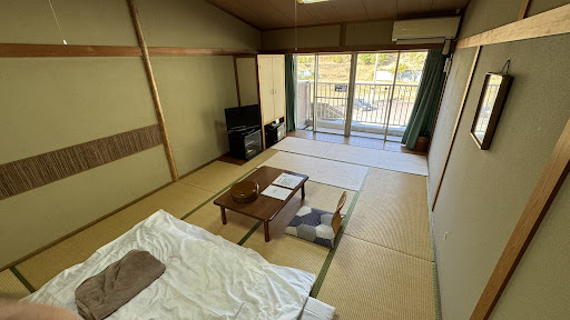 Read moreAVOID this place, especially if you're a Kumano Kodo hiker. It is not on the trail and their shuttle bus is unreliable. After you arrive at Koguchi, you need to call for the shuttle, which can come earliest at 3pm. We waited for ours until past 4pm after they said on the phone there would be a shuttle at 3. No-one informed about the delay, no-one apologized! (and this is Japan folks, where everything runs on time and people are the most polite you'll ever meet) They advertise having an onsen, but it's closed, supposedly "under renovation". In reality it's just empty, no signs of repairs being done. They can take you to another onsen, but it's another hour in a bus there and back. Their rooms and public areas should have been refurbished probably a decade ago, very run down and out of date. Also, the management philosophy seems one of cost savings. This is the first hotel in my life where COFFEE IS NOT INCLUDED IN BREAKFAST. You can BUY coffee, but no sugar or milk is available. They accept vegetarian guests (pre-ordered meals), but the food was sub standard in quality and without any taste. The staff is panicky, but means well trying to fill all the holes with their service, but it's just not enough when the basic service concept and infrastructure to create a decent customer experience are lacking. There is not one reason to stay...