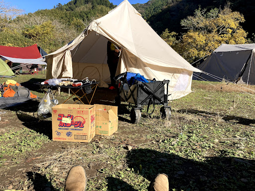 Read more周辺の他のキャンプ適地と比べて、河原から少し山側へ上がったロケーションです。地面に草が有ったりペグの刺さりも良かったりと「より適地」な印象でした。 今回はGWということもあってか日中からごった返しているという位に混み合っていて、ガンガン音楽をかけながらパーリーしている外国人さんが数組…。これはカオスキャンプ地だな…と震えましたが、外国勢はもとより他の大半もデイキャンで帰られて、夜間はさほど騒ぎ立てる人がおらず快適でした。 川の水も透き通ってキレイだったので、家族で川遊び込みでも楽しめる良いキャンプ適地でした!でも深いところや流れの緩急が複雑にあるので、ライフジャケット装着や常に目を離さ...