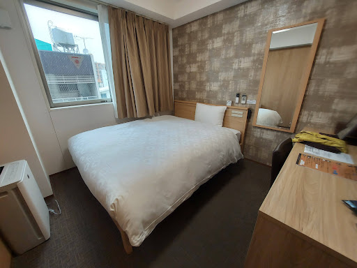 Read more綺麗・コスパ良すぎ・店員さん笑顔ハキハキ、色々と気がきいていて最高、です。 ◆駐車 19時頃でホテル前はいっぱい、第二駐車場立中なので十分台数停められる ◆部屋 姿鏡+大きめ卓鏡あり、デスク上は2箇所、別途枕元にもコンセントあり 枕元あるの地味にありがたい。 ◆大浴場 清潔でとても良き。男湯写真みたら広くてびっくり。女湯は男湯よりこじんまりだけど夜遅く入ったので貸切。暗証番号ないと入れないので夜でも安心。ビジネスホテルでこれは十分すぎる。 他の口コミの通り確かに4人もきたら洗面は混み合うだろけども部屋にもドライヤーちゃんと置いてある。 大浴場入り口にアメニティが並んでいて基本スキンケア・化粧落とし・フェイスパック・コットン諸々好きなものを取っていける。 あとよくあるペラペラなシャツ部屋着じゃなくて作務衣?型の館内着だから朝食も館内着でウロウロできてこれも地味に嬉しかった〜 ◆朝食 焼きたてパン美味しかった〜 お味噌汁きんぴら的な和食もあり。 「お部屋に持ち帰って食べても良いです」はそこまでしなくていいのでは?!と思った。食器が返ってこなくて大変そう。しないけど嬉しい。 店員さん達が明るく挨拶してくれつつまめに食事補充やお掃除して下さってて安価ビジホの朝食って感じしなかった。気持ちよくご飯食べれました。 ◆その他 やたらお好み枕の種類豊富で笑いました。お好み枕用のピローカバーあったら嬉しいなあ、、もし1枚レンタル100円とかであったら払う。あと近くに評価高い居酒屋多し。徒歩1分のおひさんにしにし酒・料理諸々良かった。予算内だし出張毎ホテルはここにし...