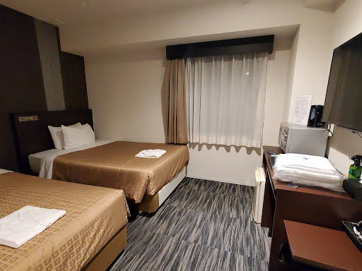 Read moretwin room was v big. counter staff wasnt too friendly. no free bottled water nor water dispenser within hotel, only vending machines. a tad far from station but near a supermarket. self check in and out using machine. 2 pillows provided per bed and mattress was from slumberland, and was pretty nice to sleep on. robes provided in room but toilet doesn't have a laundry line. first hotel I've ever seen with a microwave in room. kettle felt dirty. shower curtain was moldy....