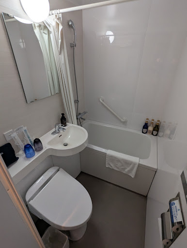 It's a simple but very sophisticated hotel with easy access to Takamatsu Station, Takamatsu Chikko Station, and Takamatsu Port, where you can enjoy very high quality service at a relatively reasonable price. Many reasonably priced hotels are used only as a base for sightseeing, to store luggage and sleep, but this hotel was very comfortable to stay in all the way, not to mention the cleanliness of the facilities. To use the elevators to the guest room floor, and to enter the guest room requires a special card key. The front desk is located on the second floor, where guests can enjoy free coffee (but only during limited hours). Each room is slightly larger than a typical business hotel and is equipped with a safe. The air conditioner, ventilation fan, and other driving noises are almost silent. On the other hand, the bathrooms seemed a bit small. However, there is a large public bath on the top (9th) floor of the hotel (limited hours for using), where you can relax and enjoy the large bathroom. The security of the lockers and other facilities in the large bathroom is very strong, so you can use it with peace of mind. On the other hand, there are no rest areas or massage chairs after bathing. Each room is equipped with a safe. The staff was essentially minimalist and the customer service was courteous and calm without going any further than necessary. This is one of the hotels that I would strongly consider using...