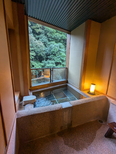 Read moreA trip I'll never forget! Everything from the location, the views, the baths, the food, and the staff were incredible. Everyone there is so incredibly kind and attentive (even though we couldn't speak Japanese, they used a little translator to help us as much as possible). Splurged on the room with a private outdoor bath and that was worth every penny! The view was incredible and you get to soak at any time without having to split into opposite genders. But it's nice to have access to the big ones too which have indoor and outdoor options. Food was 5 courses each with so many different components that are seasonal. Was so stuffed from the night before I couldn't eat all of breakfast! Room was traditional Japanese which was gorgeous, and hearing the waterfall outside was an incredible way to fall asleep. Shuttle made it easy to get to and from the station, though be aware! It leaves RIGHT on the dot, so arrive at the meet up point early! We had no problem doing so, coming all the way from Tokyo that morning on a shikansen and even enjoying lunch and sightseeing at the nearby Kyoto. It's located perfectly between Kyoto and Osaka making for great travel, but really you're there to...