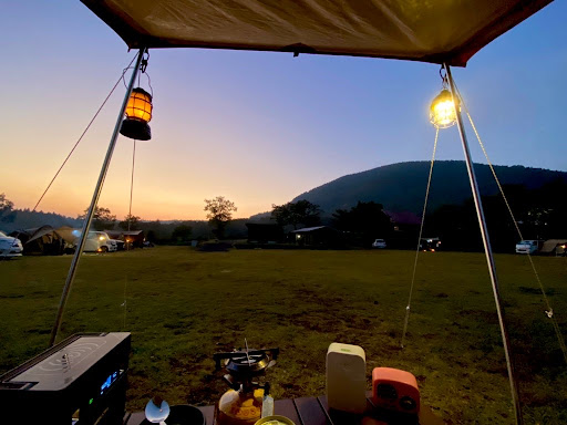 1、芝の状態もよく、ペグをさすのが楽でした✨ 2、標高が高いので、そこまで虫がいませんでした。 3、ホテルの温泉が塩化物泉と硫黄泉の2種類あって、かなりいいです😆 4、照明がなく真っ暗なので、夜は満天の星空を見れます。