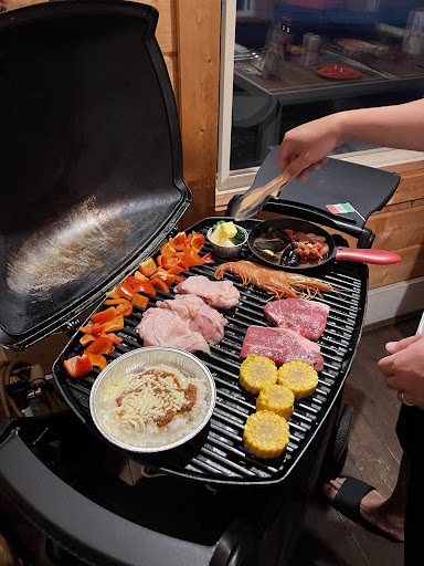 露營晚餐:使用燃氣烤爐BBQ 園區有供應墨西哥式料理食材 吃不夠的部分都可和服務櫃檯追加購買。 另外服務櫃檯旁也有無限自助暢飲的服務 (需額外付費 )