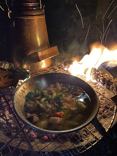 •ランチ営業のレストラン。猪肉を使った料理が食べられます。美味しい! •遊園地という名の手作り遊具が数点。トロッコのような『つるべ車』と呼ばれる乗り物に、娘は何度も何度も乗っていました。他にもターザンロープがあります。 •ボール遊びなどができるちょっとした芝生広場があります。竹馬もありました。 •自然に囲まれたいい意味で田舎のキャンプ場。おっちゃんおばちゃんみんな温かくて素敵です。 •場内に小川が流れており、サワガニがたくさんいます。11月でも10匹はとれました。 •今回はオートキャンプ場を利用。砂利で水捌け良好。土で幕が汚れず快適です。ただし人が歩くと夜間は音が響きます。 •砂利敷きの空間の、周りをぐるりとサイトがあり、真ん中は通路として空いています。悪く言えば駐車場みたいな感じ?ただ周りには木々があり、自然を感じられるので景観は悪くはありません。 •砂利敷きのオートサイトエリアは、全て電源付きです。古い情報では何番は電源あり、何番は電源なしというかんじだったようですが、すべて電源ありになりました。別のエリアのテントサイトは電源なしかもしれません。 •トイレは汲み取り式ですが簡易水洗で、特に臭いもなし。キレイな洋式便座で、不便なく使えます。汲み取り式という情報で少し尻込みしていましたが、全然セーフです。 •炊事場も使いやすい。お湯は出ません。 •場内自販機あり。 •お風呂は車で5分もかからないところに温泉があります。奥猪名健康の郷というところです。浴槽ひとつのこじんまりしたお風呂ですが、天然温泉で、利用料大人300円と激安です。施設はキレイで、十分満足できます。ロッジや本館宿泊、川遊びもできる施設です。 •オートサイト場内に岩があり、子どもが登って遊べます。オートサイト4番5番はその岩の目の前です。その岩で遊ぶ子どもは、どうしてもその4番5番のサイト内?をうろうろするので、わずらわしく感じる人もいるでしょう。私は自分のサイトが5番だったため、逆によそ様に迷惑かけることなく我が子が思い切り遊べるなら良いかと割り切りました。サイト内に普通によその子が入ってきますが、娘も友達ができ、これもキャンプの醍醐味かと思うようにしました。相手の親もすいませーんって感じだったので、特に嫌な思いはしていませんが、気になる人は要注意です。 •キャンプ場で薪販売あり。500円です。 •サイトは植林で区分けされています。ただし、広さにばらつきがあるので要注意。角のサイトはどれも狭いので、避けた方がいいです。車込み80平米くらいです。また、オートサイト内に入る入り口付近は場内に入る車の動線になるので、避けたいところです。縦はどこも10mくらい。10番サイトは一番広く、横は12mほどあります。それ以外は横幅9mちょいくらいでしょうか、大体車込み100平米くらいで、大差ないです。角、入り口付近を避け、10番が空いていればラッキー、あとは岩問題で4番5番を避けるかどうかという感じです。サイト指定の要望は、予約の際に聞いてくれます。 •4番5番は比較的木陰が多め?