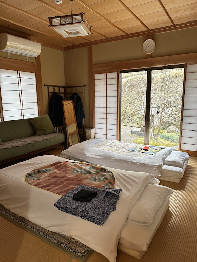 What made it so memorable for us includes: A warm, home-like atmosphere – While not luxurious, everything was thoughtfully designed for comfort and relaxation after a long day of hiking. From the Toto smart toilet washing machine dryer and the spacious bathroom with a hot bathtub to the cozy living area perfect for bonding with friends, every detail brought a sense of peace and care. Thoughtful hospitality – We were welcomed with refreshing iced water and a glass of homemade plum wine, a delightful local touch that made us feel truly cared for. Comfortable and scenic rest – The sleeping area was spacious, with soft, clean bedding and a breathtaking view. Waking up to such serenity was a gift in itself. Heartfelt local connection – The 横矢 family were incredibly kind and welcoming. They showed us around the house, prepared delicious meals with care, and even sent us off with a local farewell tradition that deeply touched us.