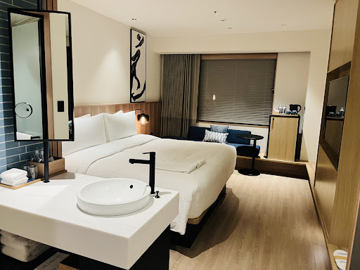 The hotel is newish but a little on the sterile side. The room was a nice size and the double bed was comfortable. The toilet was separated from the bath and the bedroom via a sliding door.