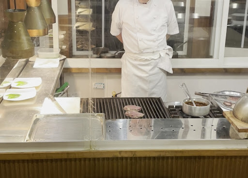 そしてステーキは オープンな焼き場で 見た目から楽しませてくれます こちらのソース自体は甘さ控え目で硬派 肉をシンプルに味わう感じです