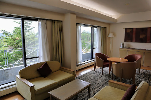 Read moreBeautiful surroundings by the shore of Lake Megamiko, good for taking a walk or jog around the lake ||+ Onsen has both indoor and outdoor areas ||+ Room was big with separate sleeping and living area, as well as a small kitchenette for self catering ||+ Good kaiseki meal ||+ Good service. Some service personnel able to understand english and mandarin well. ||||- Due to the large compound of the hotel, significant amount of walking and transferring from one lift to another / up and down stairs has to be done, which can be a little time consuming||- One small lift per building, making waiting time for lift slightly long||- Room slightly dated ||||Overall, a good place to stay in idyllic surroundings. Slightly longer walking distance and waiting times not an issue for a laidback...